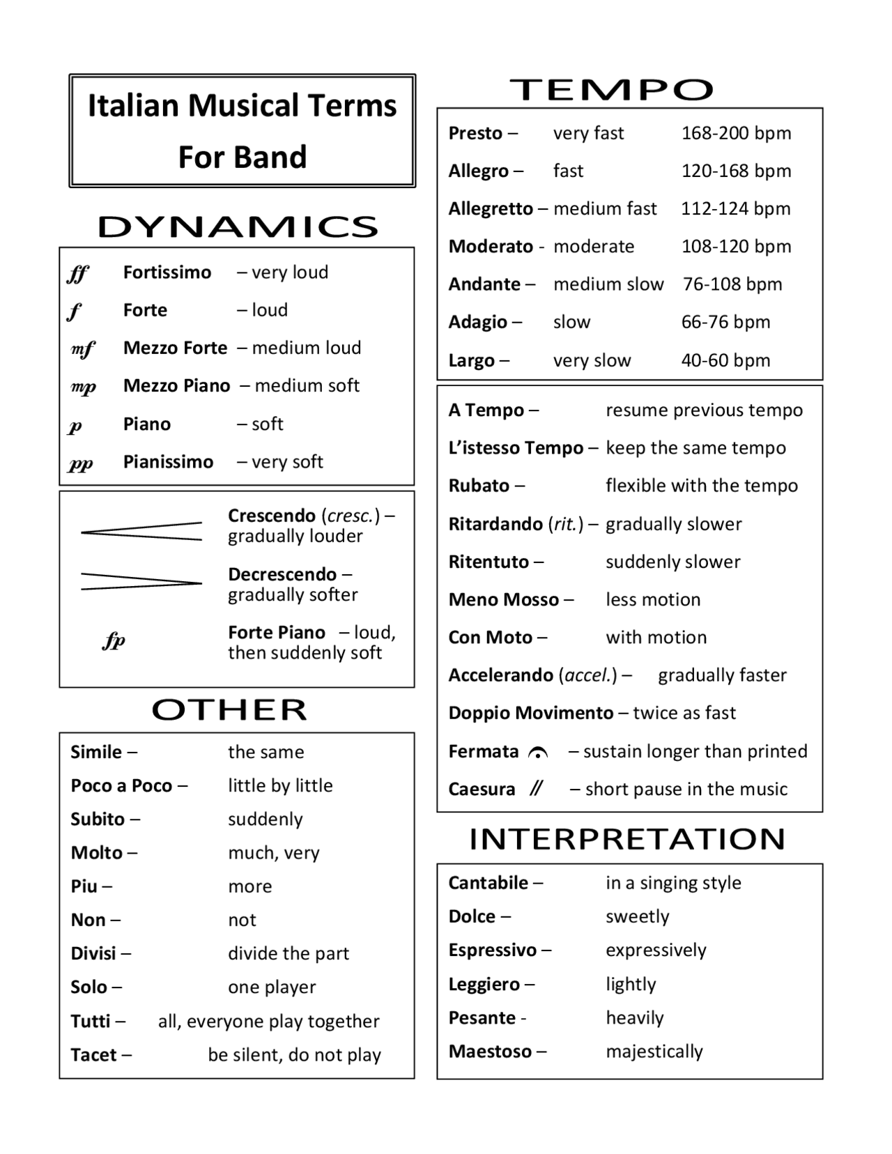 Minimal Music Terms And Definitions Printable Music Vocabulary