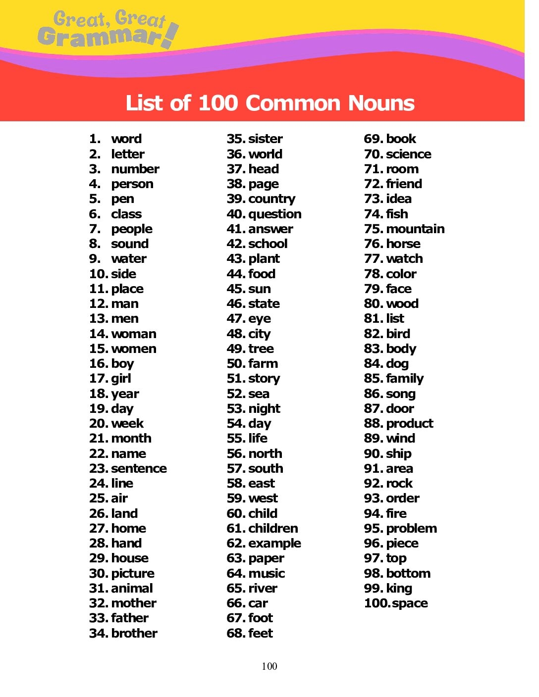 List Of Nouns 1000 Common Nouns In English 7ESL