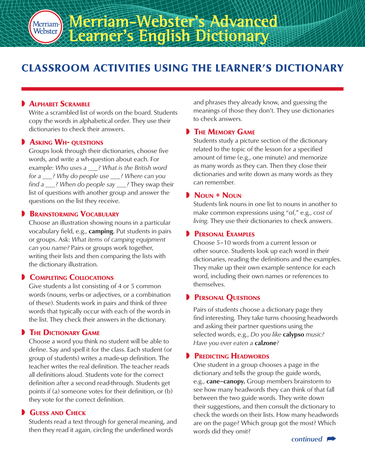 Download and Print list of people with definitions Listed below