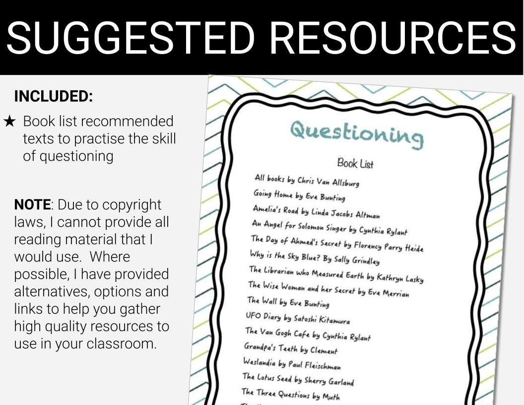 List of Reading Comprehension Questions: