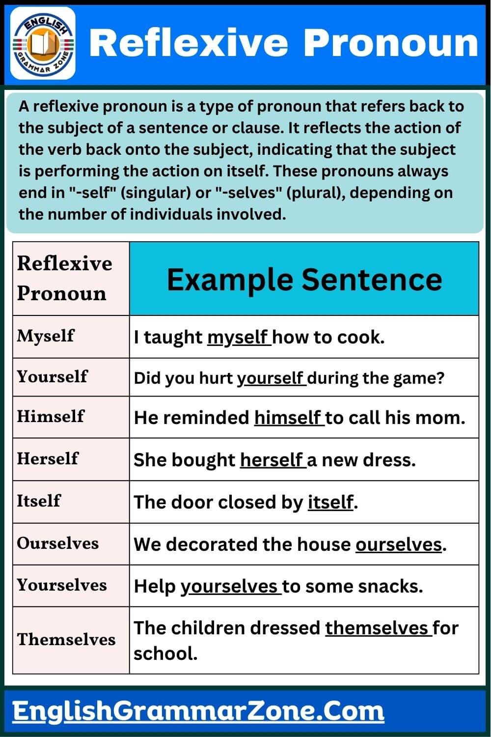 List of Reflexive Pronouns: