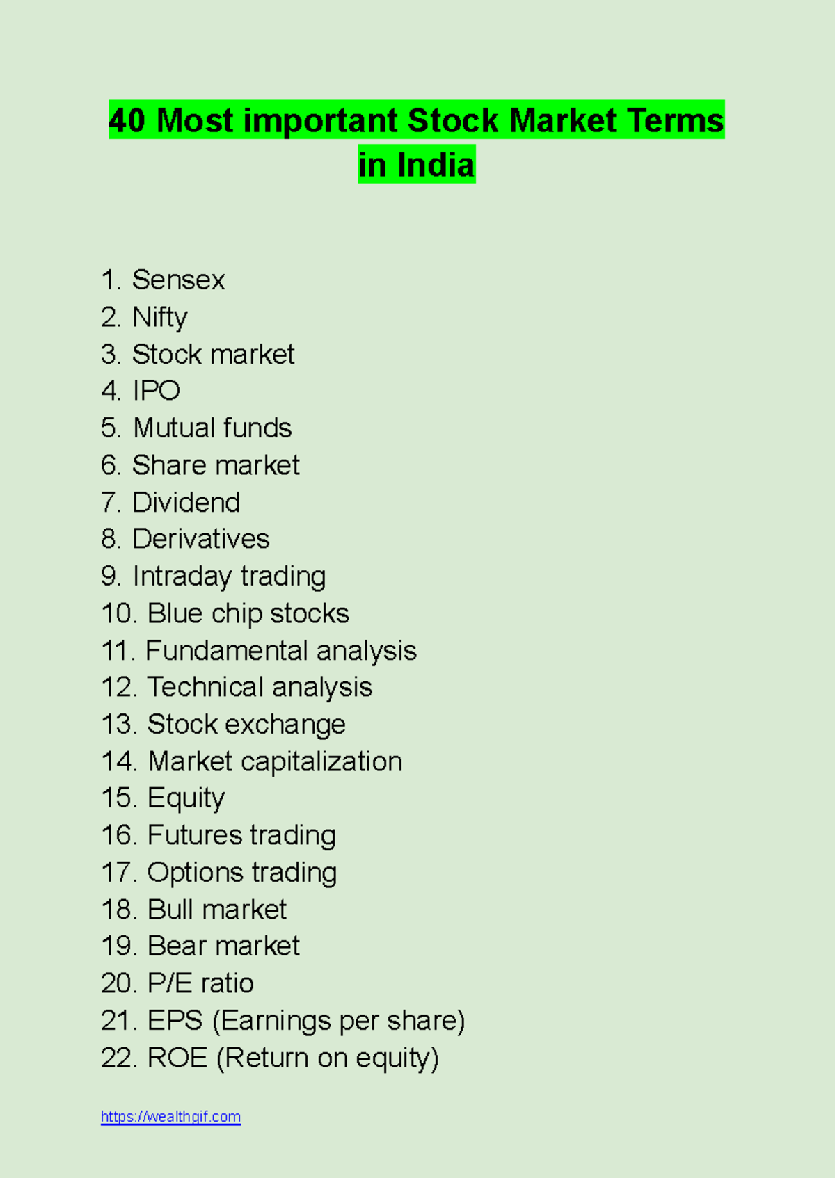 Download and Print list of stock market terms Listed below