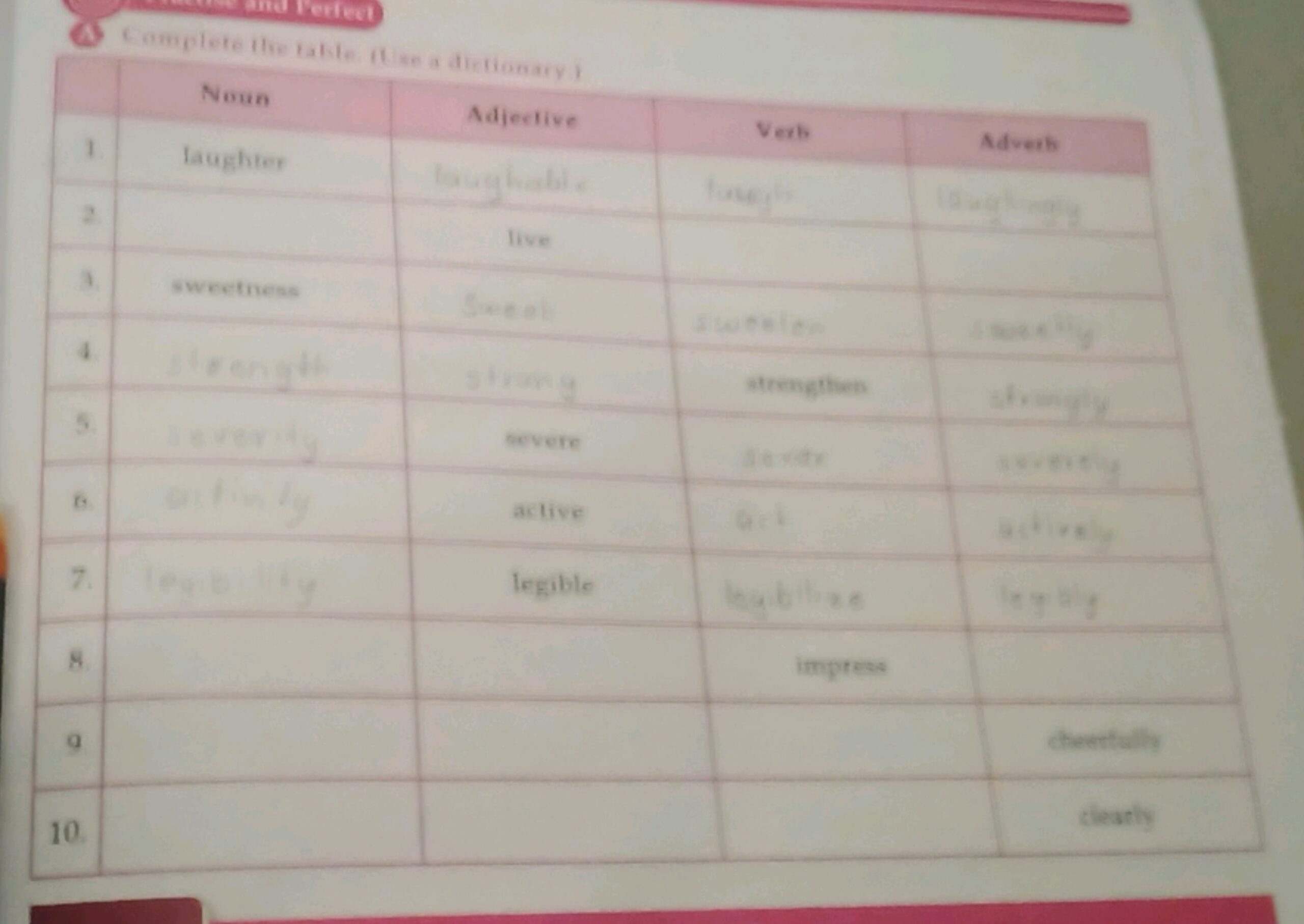 PerfectComplete The Table Lise A Dictionary 1Noun1laughter5Adject