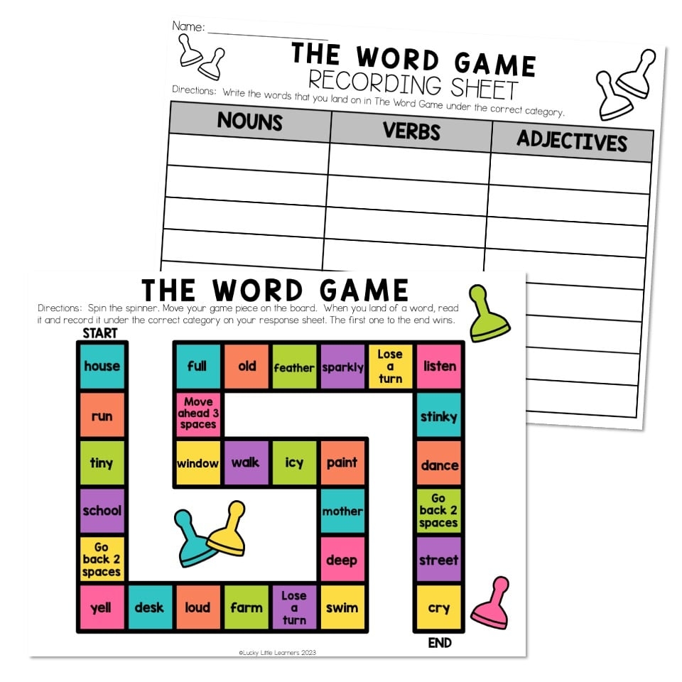Classroom Transformation Game Day Grammar Game The Word Game Nouns Verbs Adjectives Lucky Little Learners