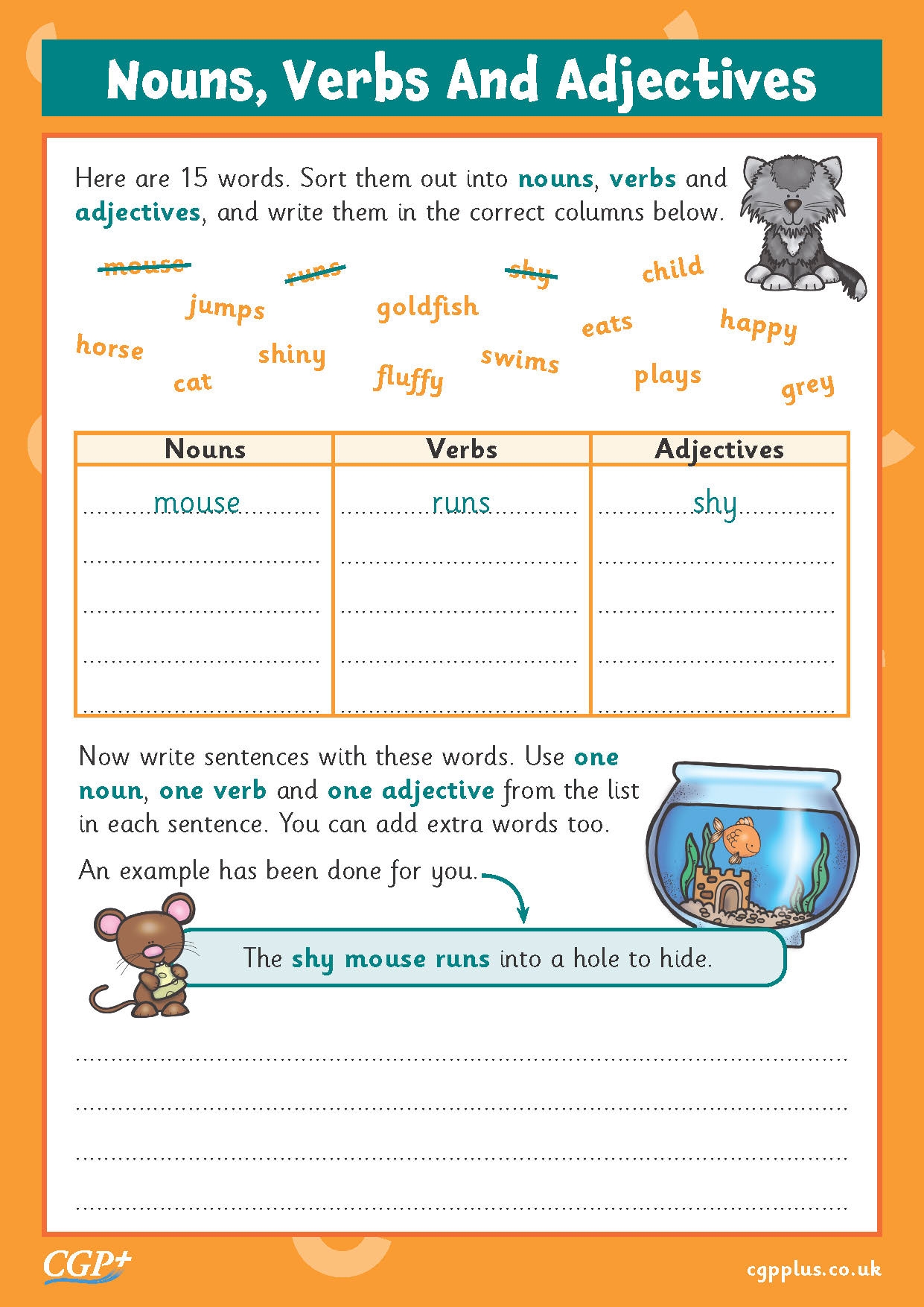 Once you have downloaded the worksheet, print it out and distribute it to your students. Encourage them to read each sentence carefully and identify the nouns, verbs, and adjectives. They can then fill in the corresponding blanks or write the words in the appropriate columns.