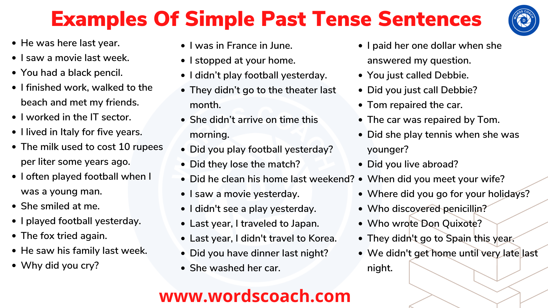 1. Simple Past Tense: The simple past tense is used to describe actions that were completed in the past. For example, “She walked to the store yesterday.” In this sentence, “walked” is the simple past tense form of the verb “walk.”