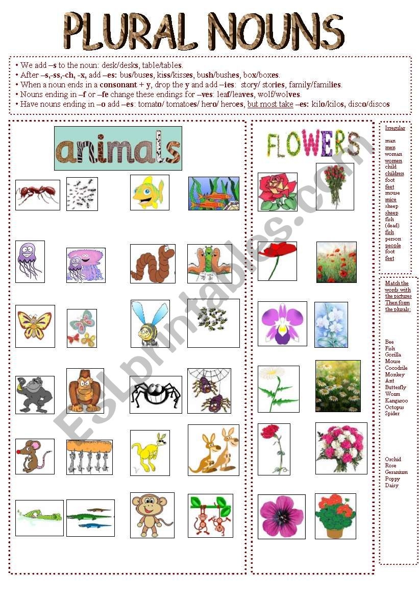Plural Nouns animals And Flowers ESL Worksheet By Anareb