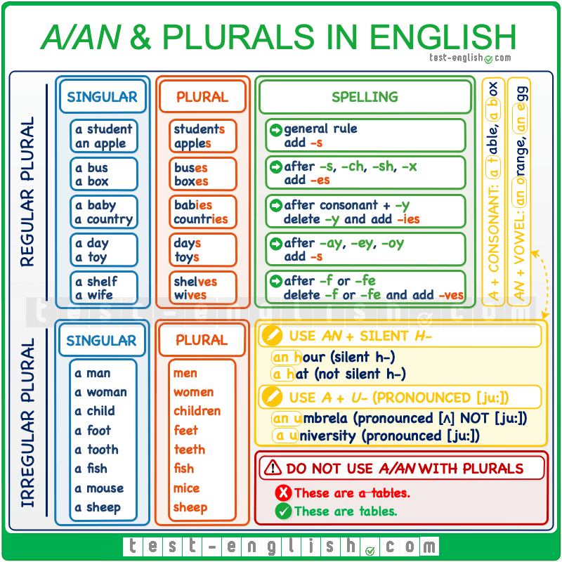 A an Plurals Singular And Plural Forms Test English