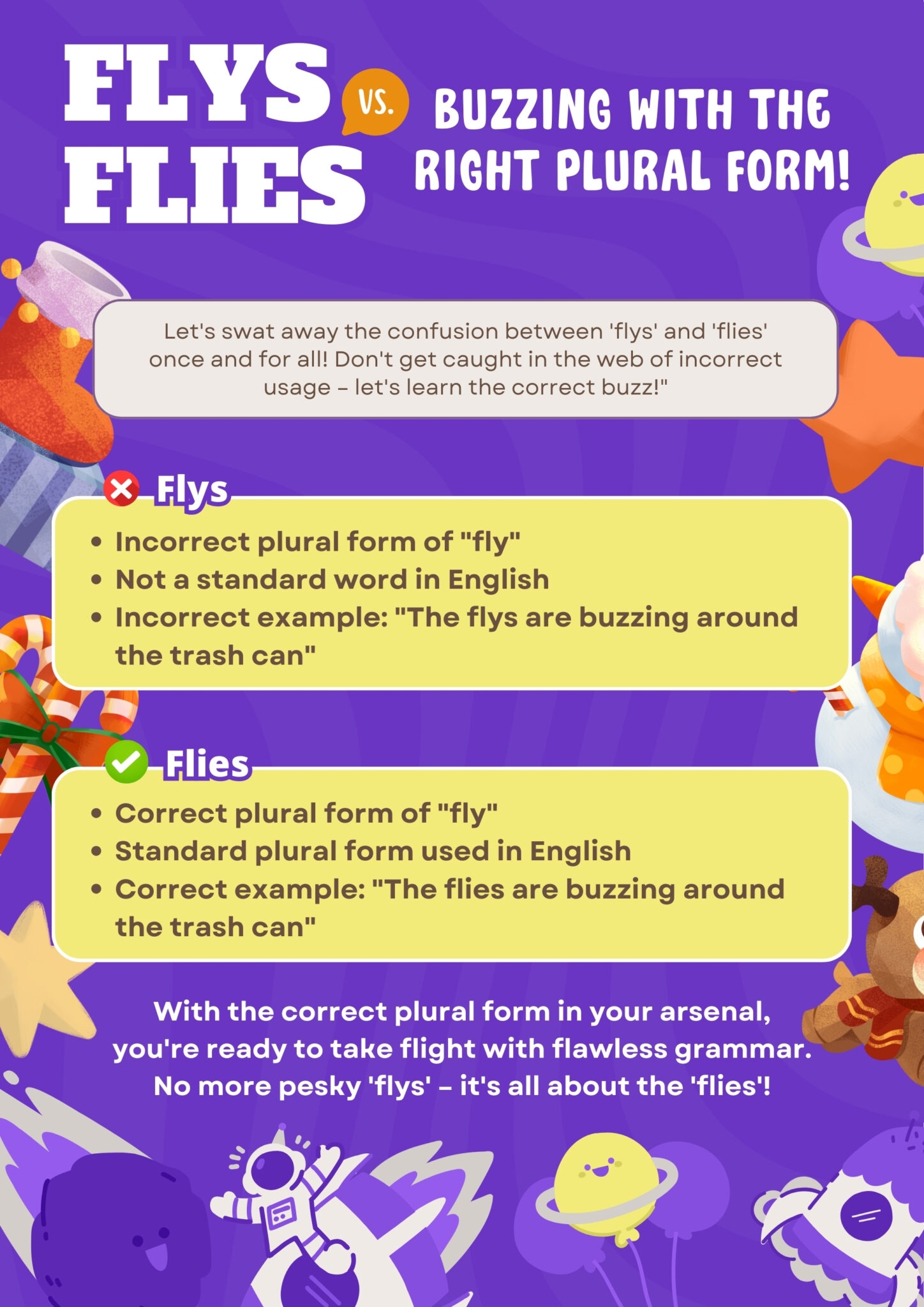 It’s important to remember that English can be a complex language with many rules and exceptions. However, by familiarizing yourself with the proper plural forms of nouns like “fly,” you can improve your communication skills and ensure that you are using the language correctly.