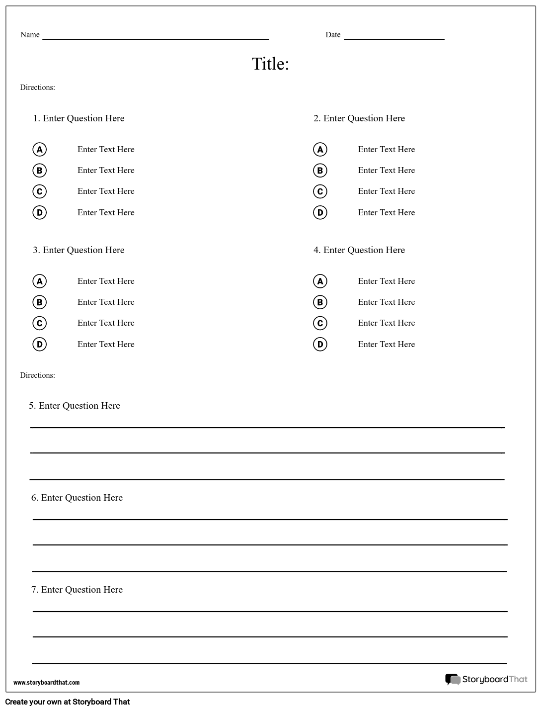 Storyboard That Multiple Choice Worksheet Templates