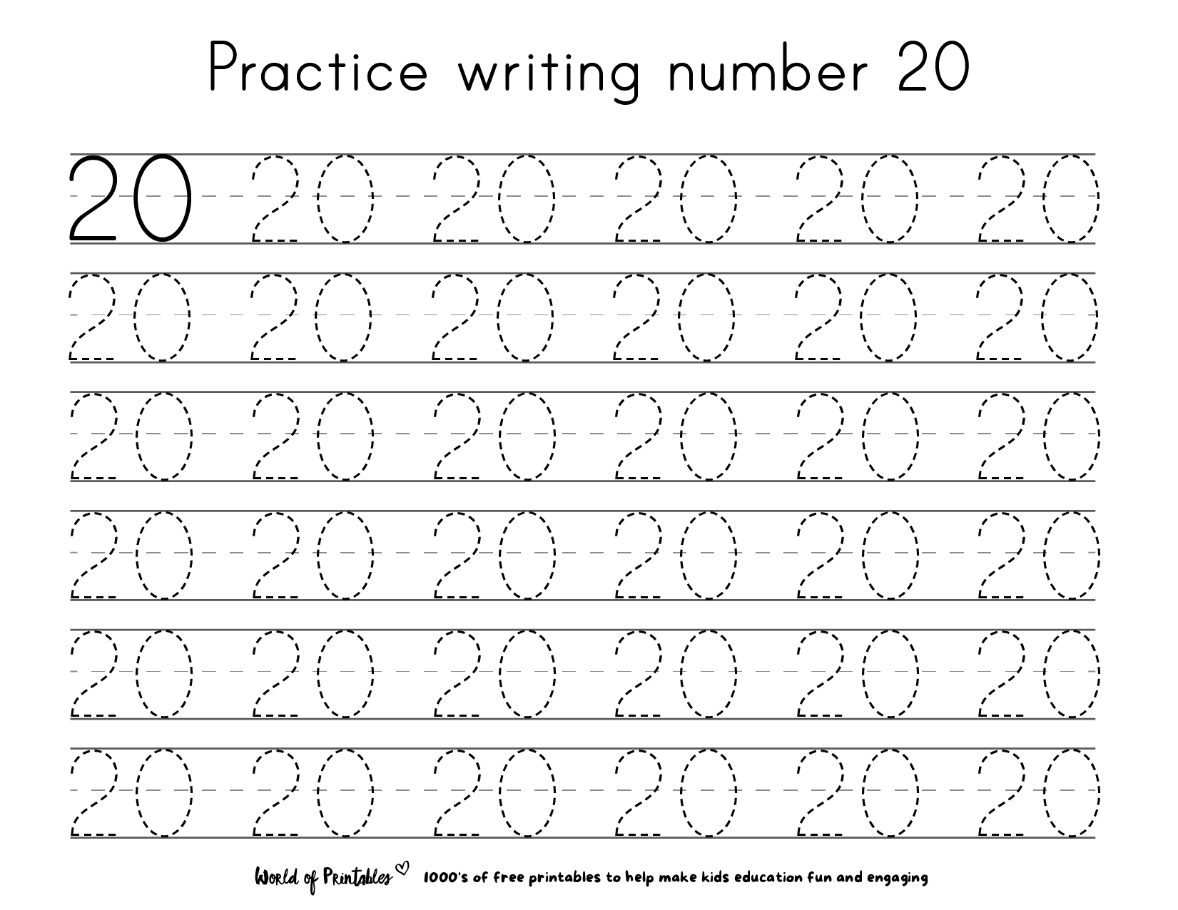 These worksheets provide a visual guide for children to trace each number from 1 to 20. They can practice their pencil grip and hand-eye coordination while learning how to write each number correctly. The worksheets can be printed out and used over and over again, making them a cost-effective and convenient learning tool.