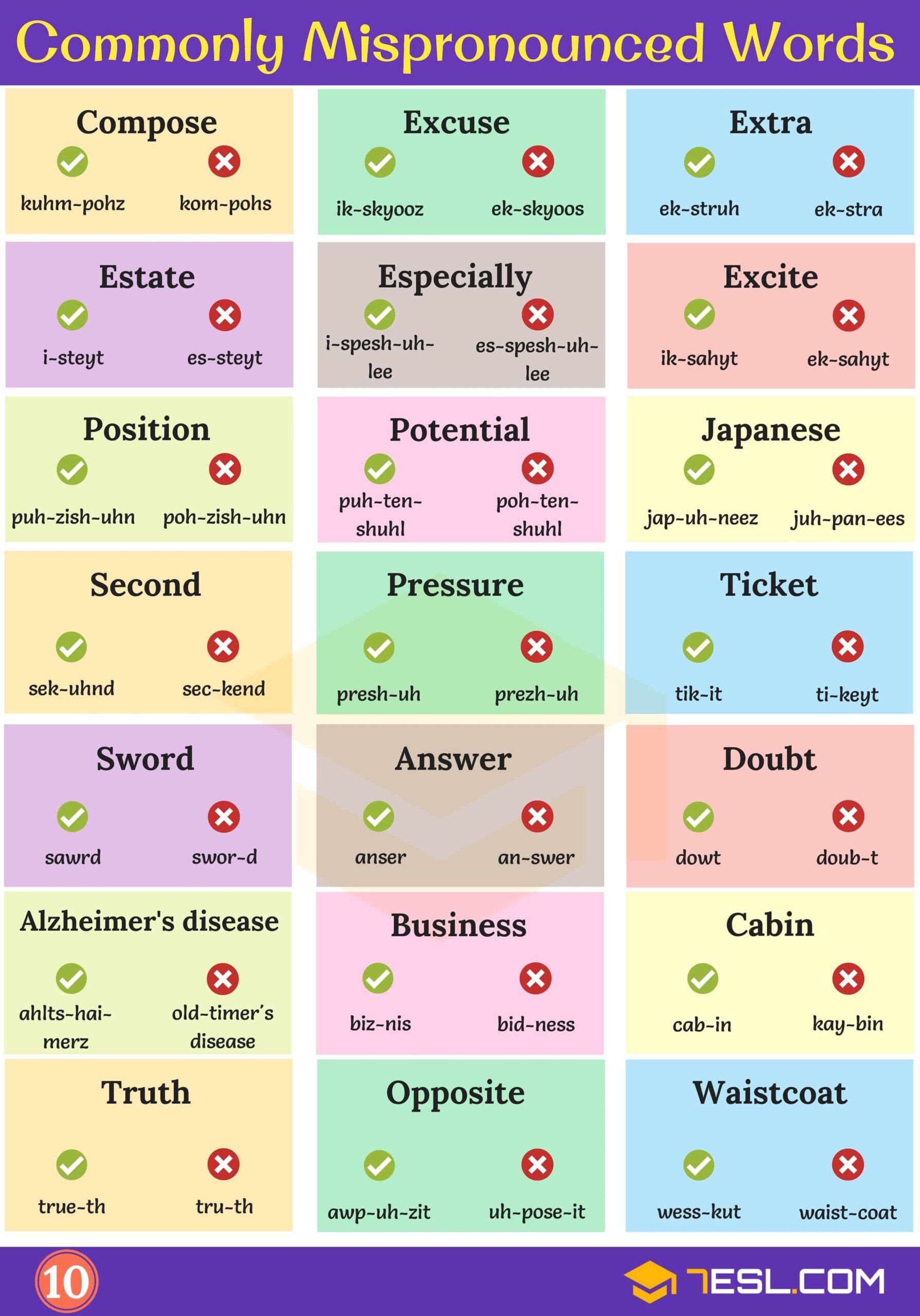 185 Commonly Mispronounced Words In The English Language 7ESL