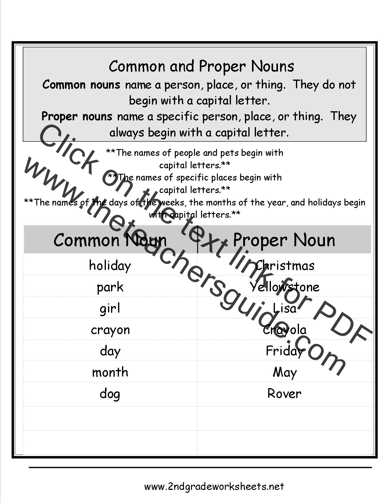 Proper Noun Worksheet PDF