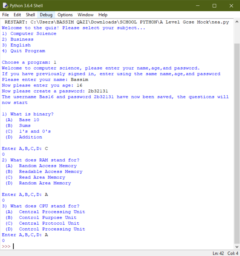 Quiz Questions