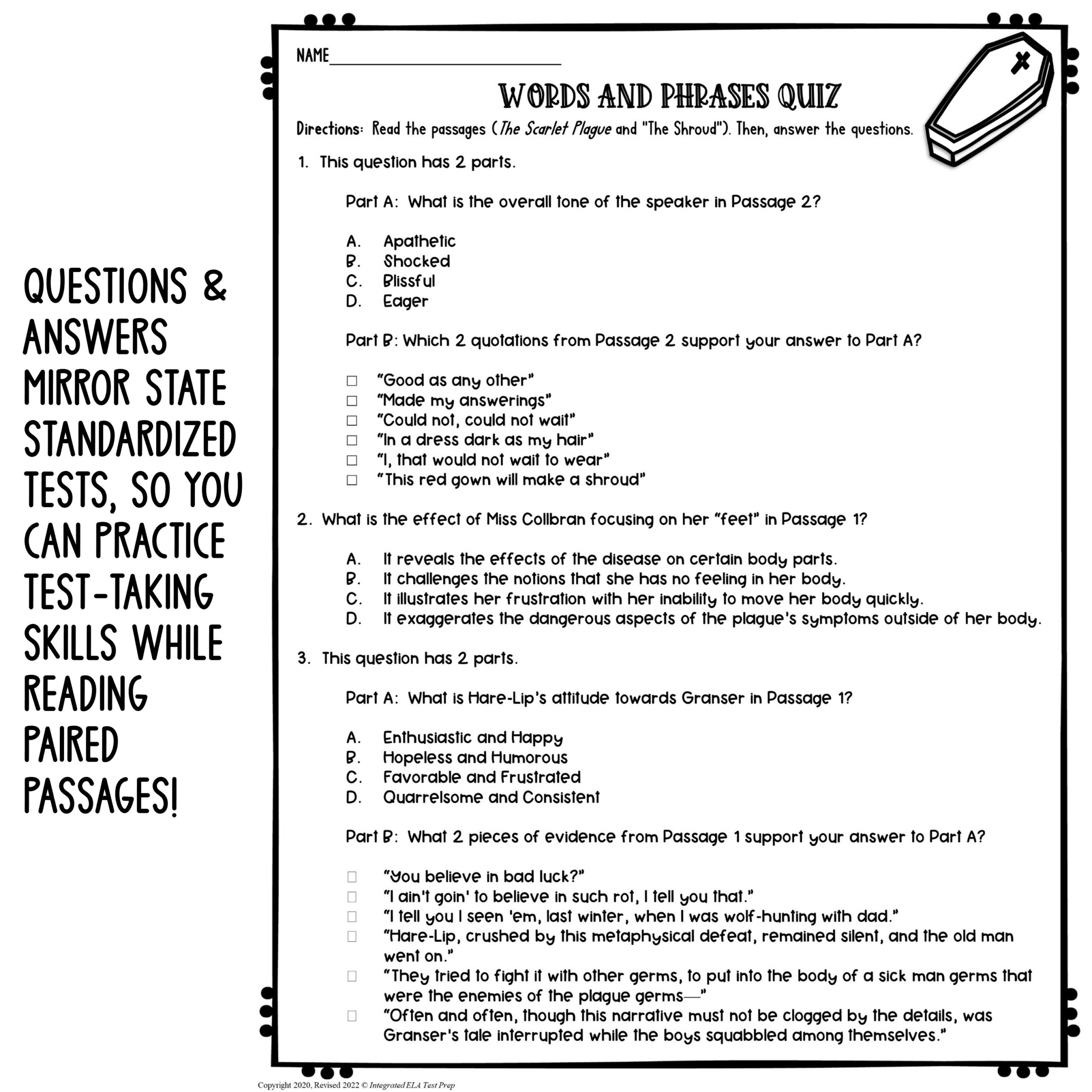 High School Reading Comprehension Passages And Questions Lesson
