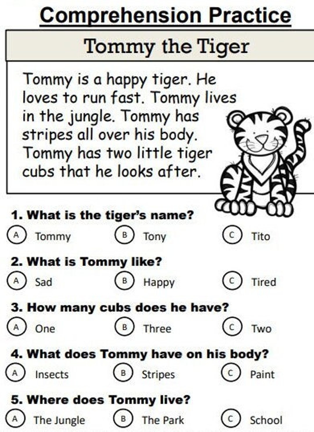 Reading Comprehension For Grade 3 With Multiple Choice Questions