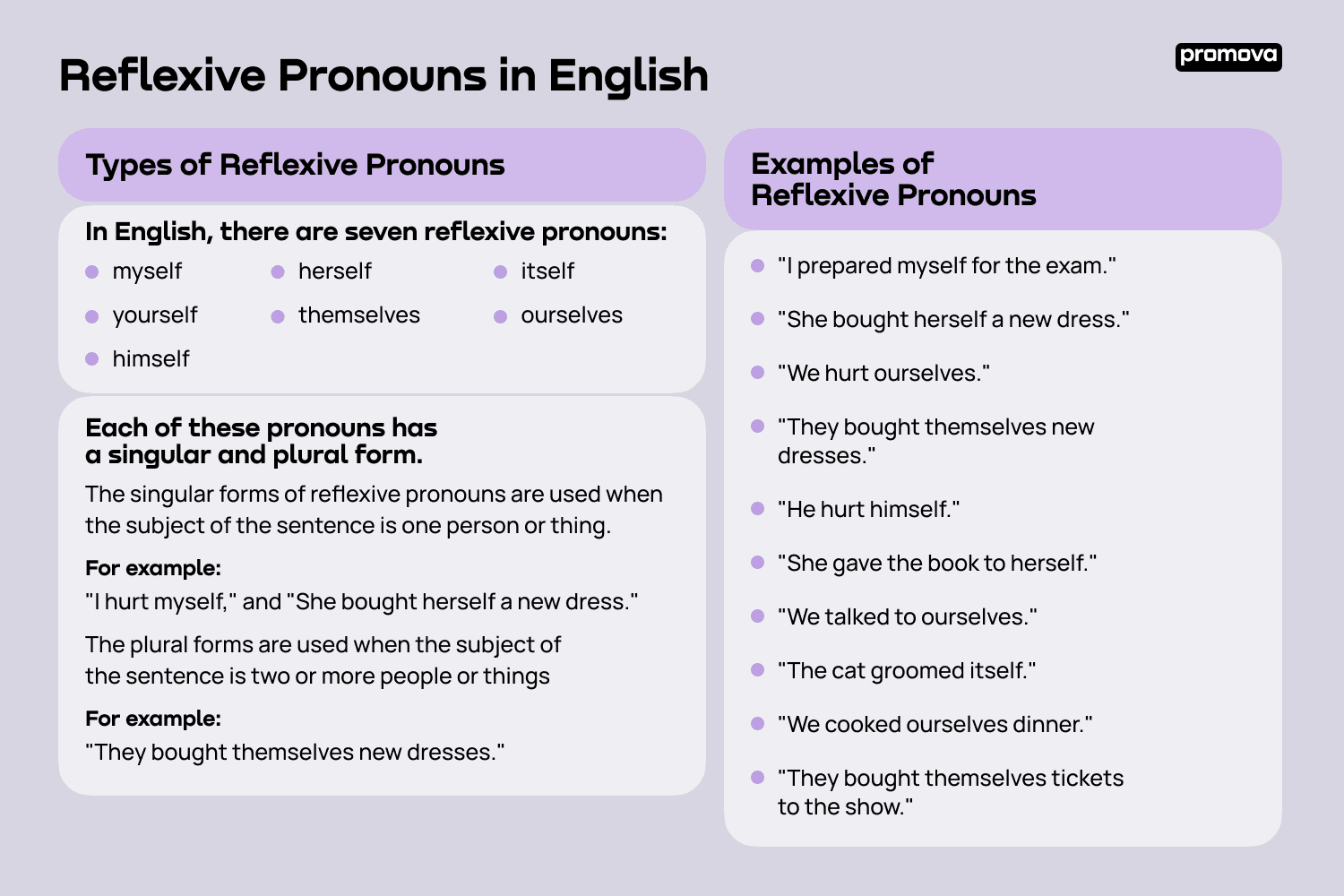In English grammar, reflective nouns are used to refer back to the subject of the sentence. They often end in “-self” or “-selves” and are used to reflect the action of the subject back onto itself. For example, in the sentence “She congratulated herself on a job well done,” the reflective noun “herself” refers back to the subject “she.” Reflective nouns can add depth and nuance to our writing.