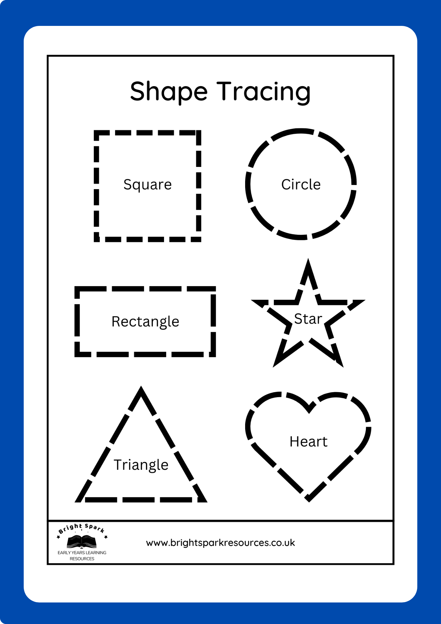 Tracing shapes can help improve a child’s hand-eye coordination, pencil grip, and overall handwriting skills. It also helps them recognize and differentiate between different shapes, laying a foundation for later math concepts.