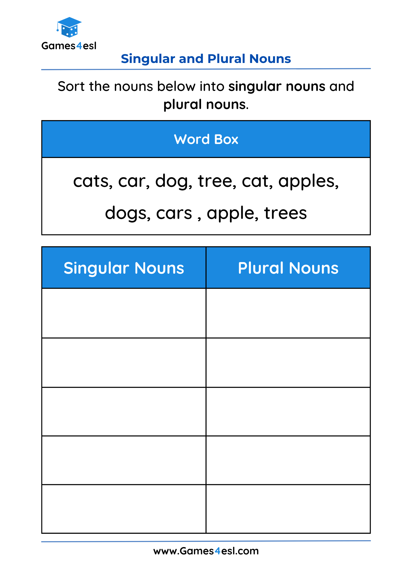 Worksheets are a great way for students to practice and reinforce their knowledge of singular and plural nouns. They provide exercises and activities that help students identify and use singular and plural nouns correctly in sentences.