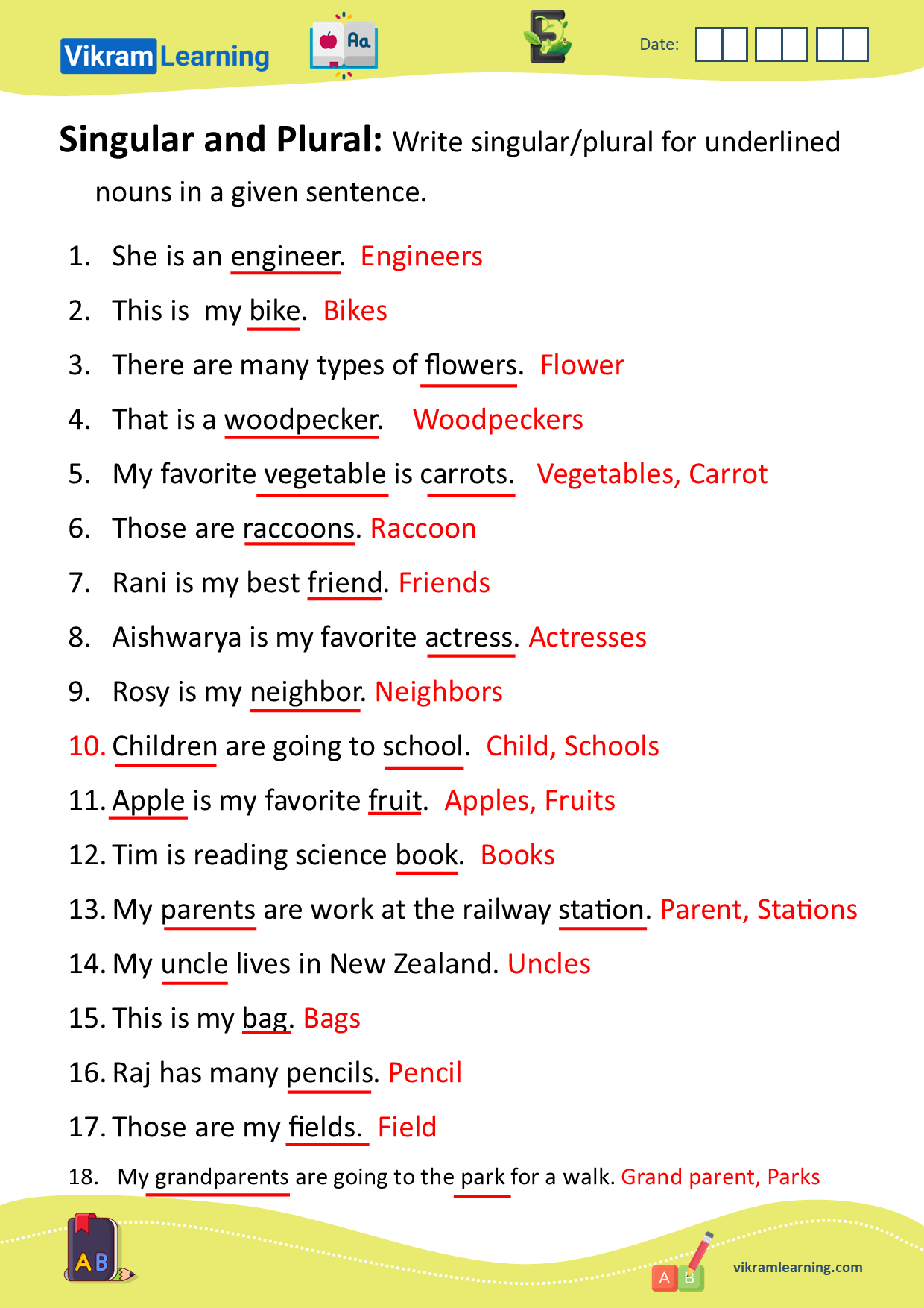 Download Singular And Plural Worksheets For Free Vikramlearning