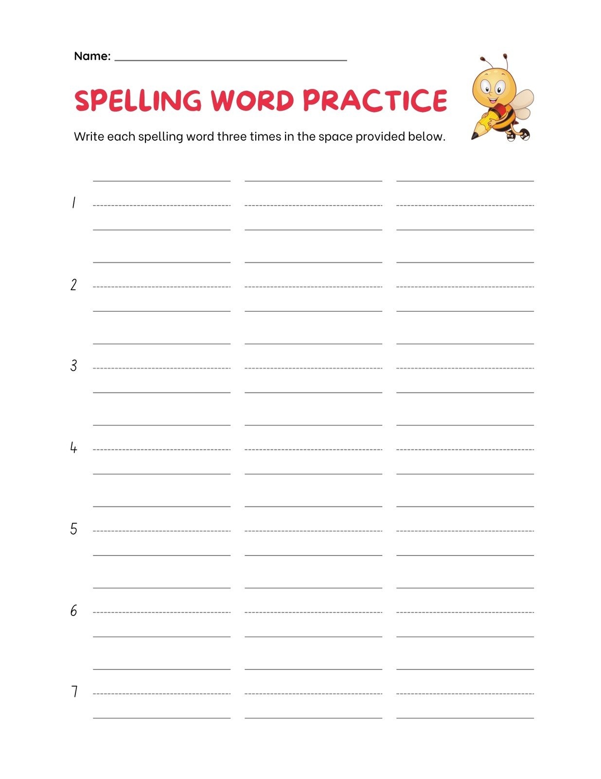 Below is a simple template that teachers can use to guide students in practicing their spelling words using the “5x each” method: