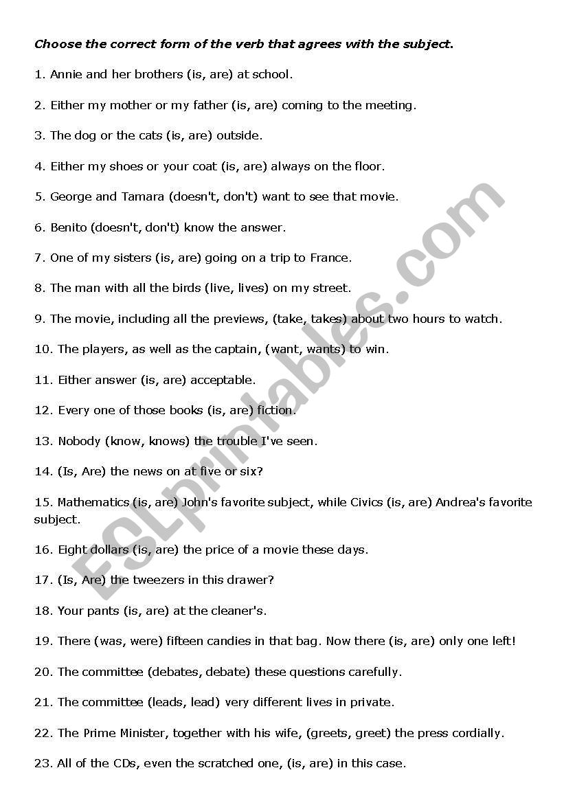 Subject-verb agreement is a crucial aspect of grammar that ensures that the subject and verb in a sentence agree in number. It may seem like a simple concept, but it can often be a source of confusion for many writers. One way to practice and reinforce this important grammar rule is by using answer sheets that provide examples and explanations of correct subject-verb agreement.