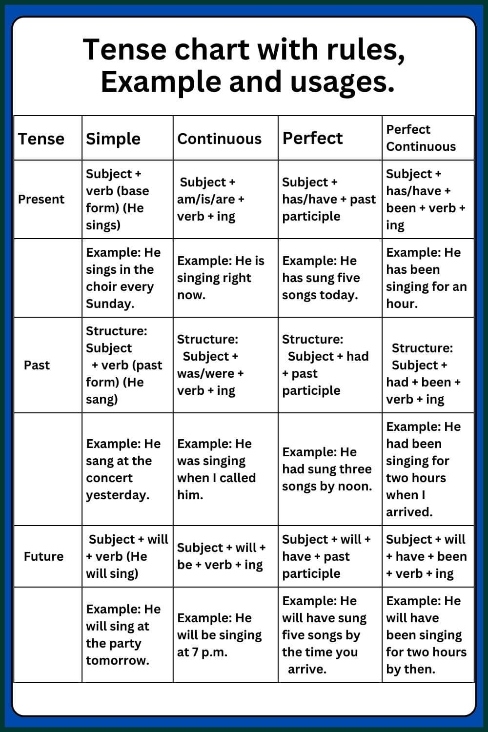 Tense Chart With Rules And Examples