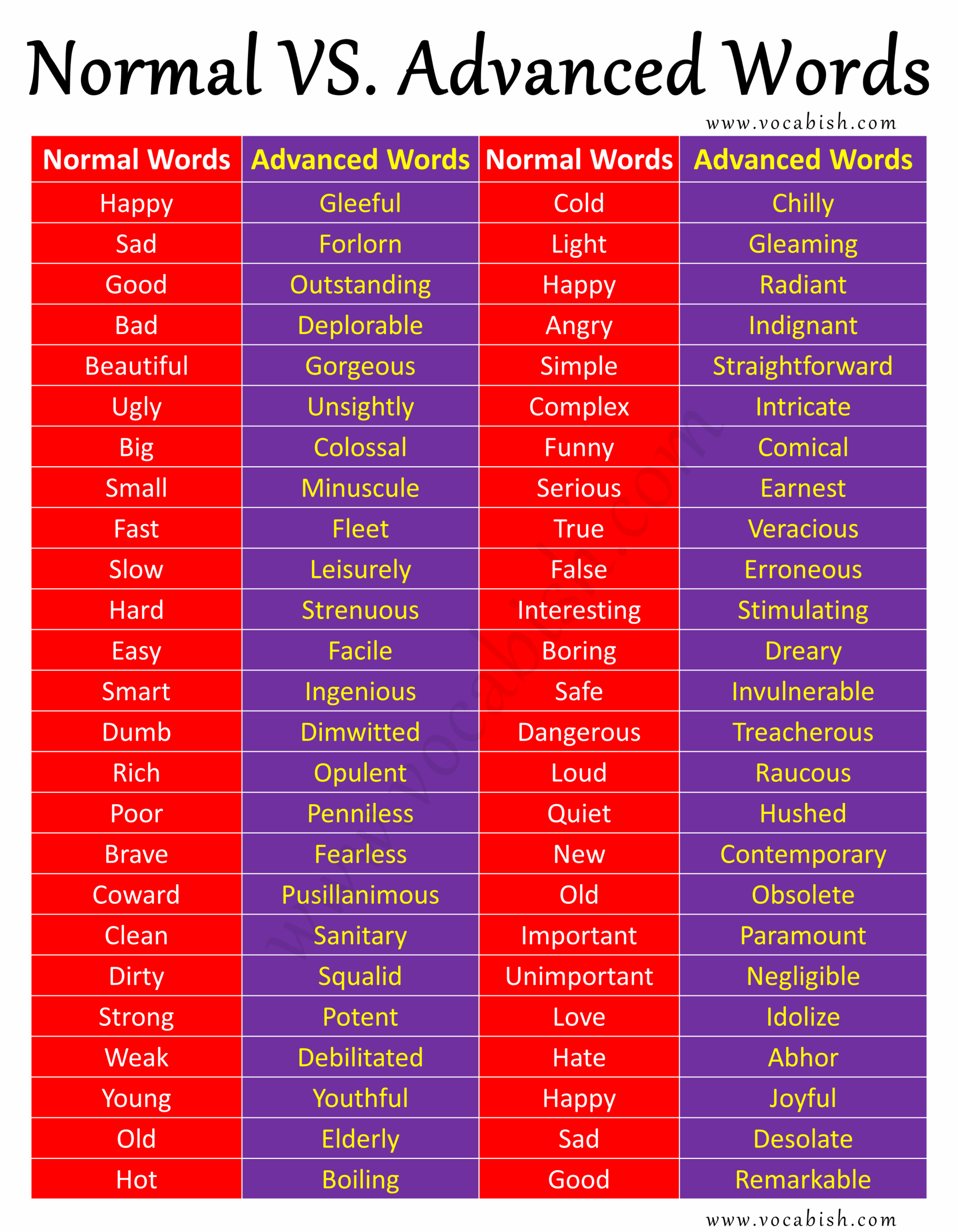 Daily Used Normal Vs Advanced English Words With PDF Vocabish