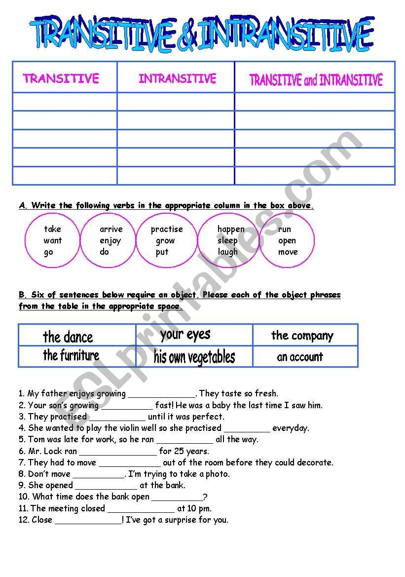 In conclusion, understanding the difference between transitive and intransitive verbs is essential for mastering English grammar. Liveworksheets that focus on these two types of verbs can provide valuable practice and reinforcement for students looking to enhance their language skills. By using interactive and engaging worksheets, students can improve their ability to identify and use transitive and intransitive verbs effectively in their writing and communication.