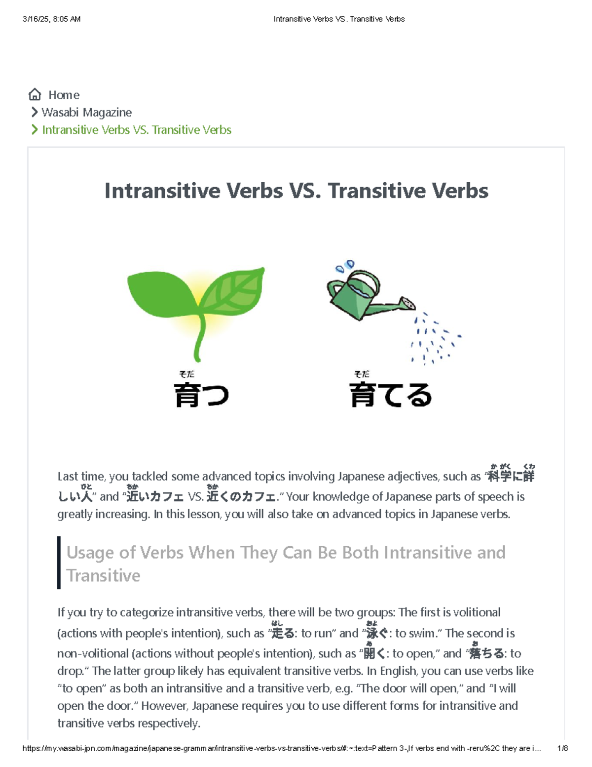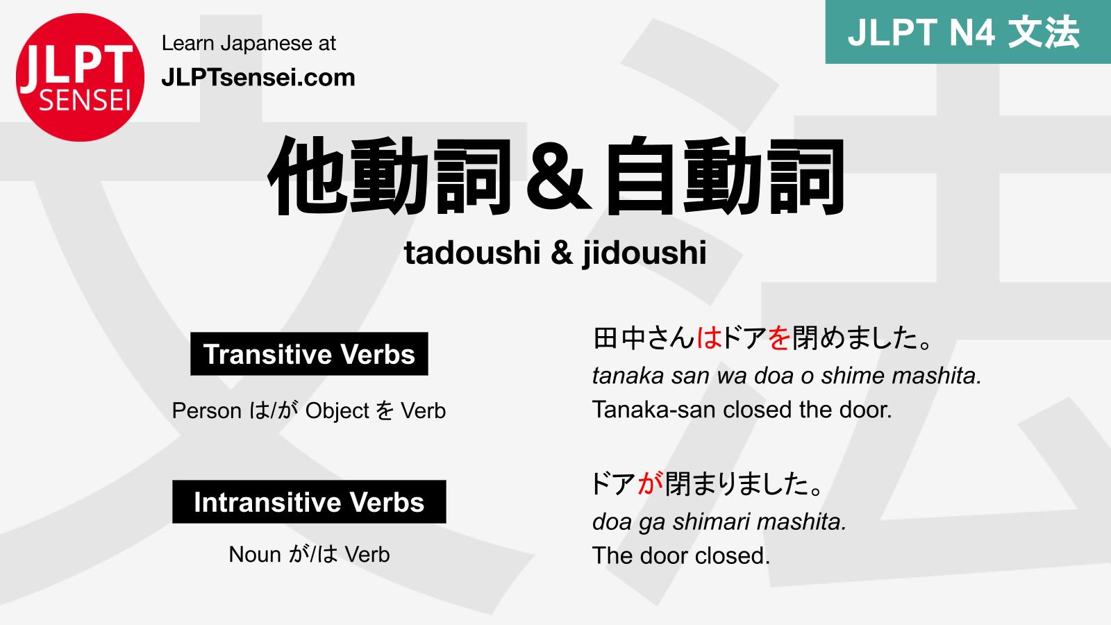 Japanese verbs can be categorized into two main types: transitive and intransitive verbs. Understanding the difference between these two types of verbs is crucial for mastering the Japanese language.