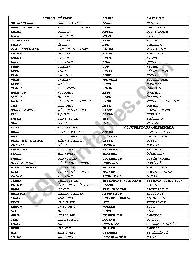 1. Verbs: run, jump, eat, sleep, laugh