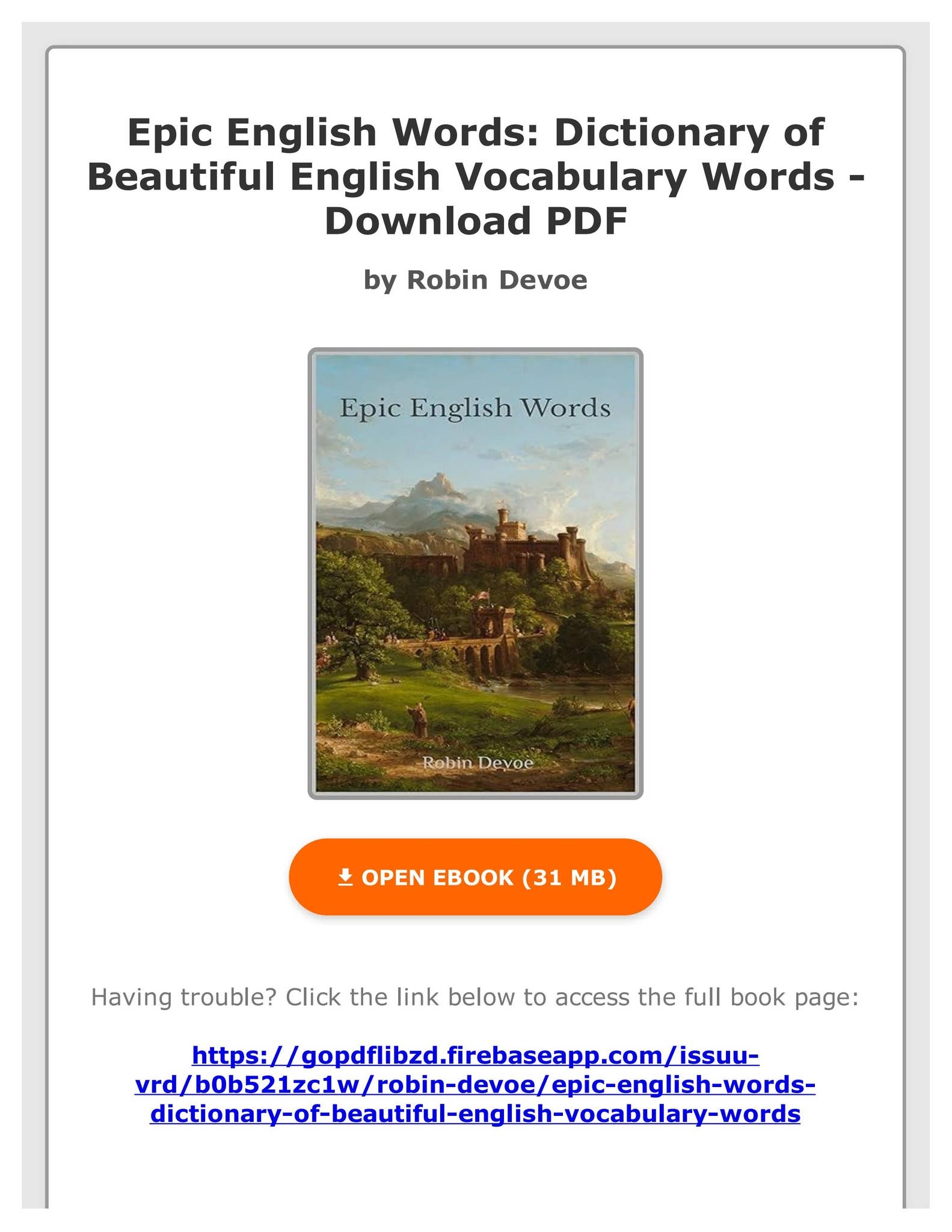FREE PDF Epic English Words Dictionary Of Beautiful English Vocabulary Words By Robin Devoe By ConstanceRueckerli Issuu