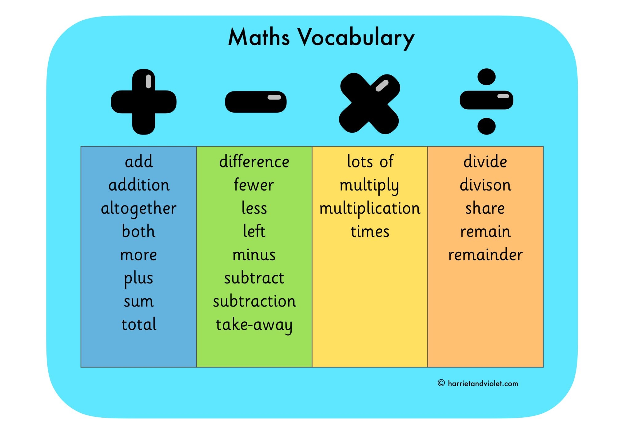 Math Words Vocabulary List Teaching Ideas And Free Printables