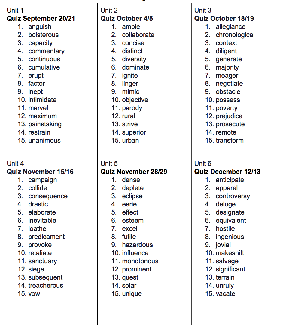 Vocabulary Words for 6th Graders