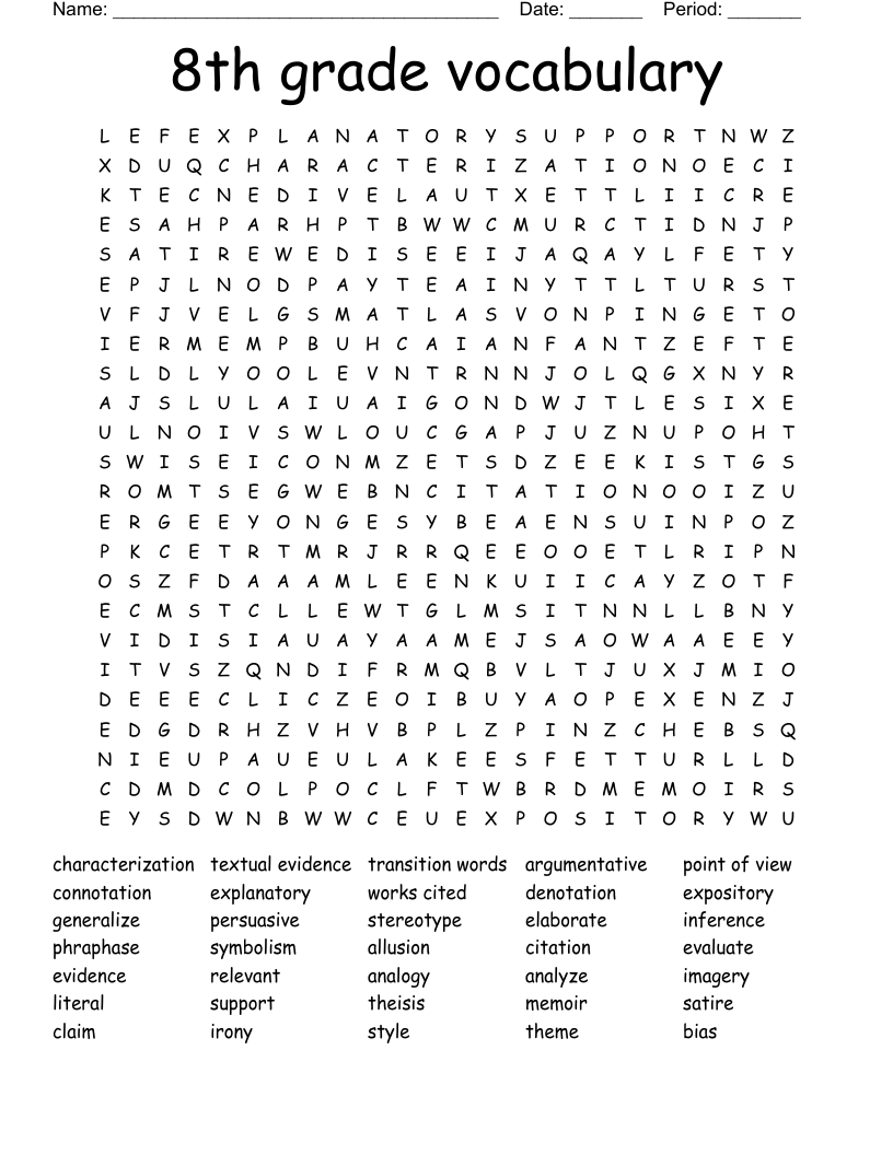 8th Grade Vocabulary Word Search WordMint