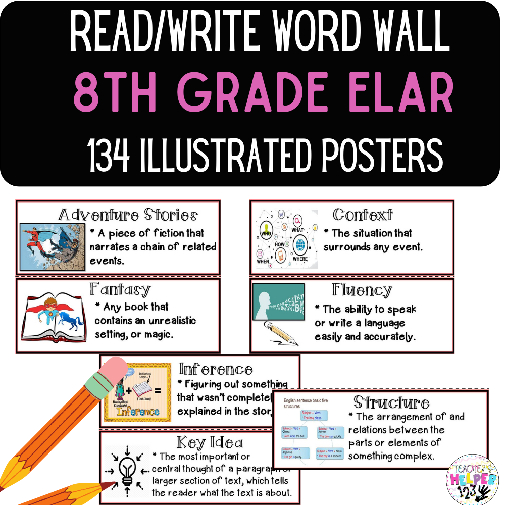 Word Wall Vocabulary Posters For 8th Grade Reading Write English