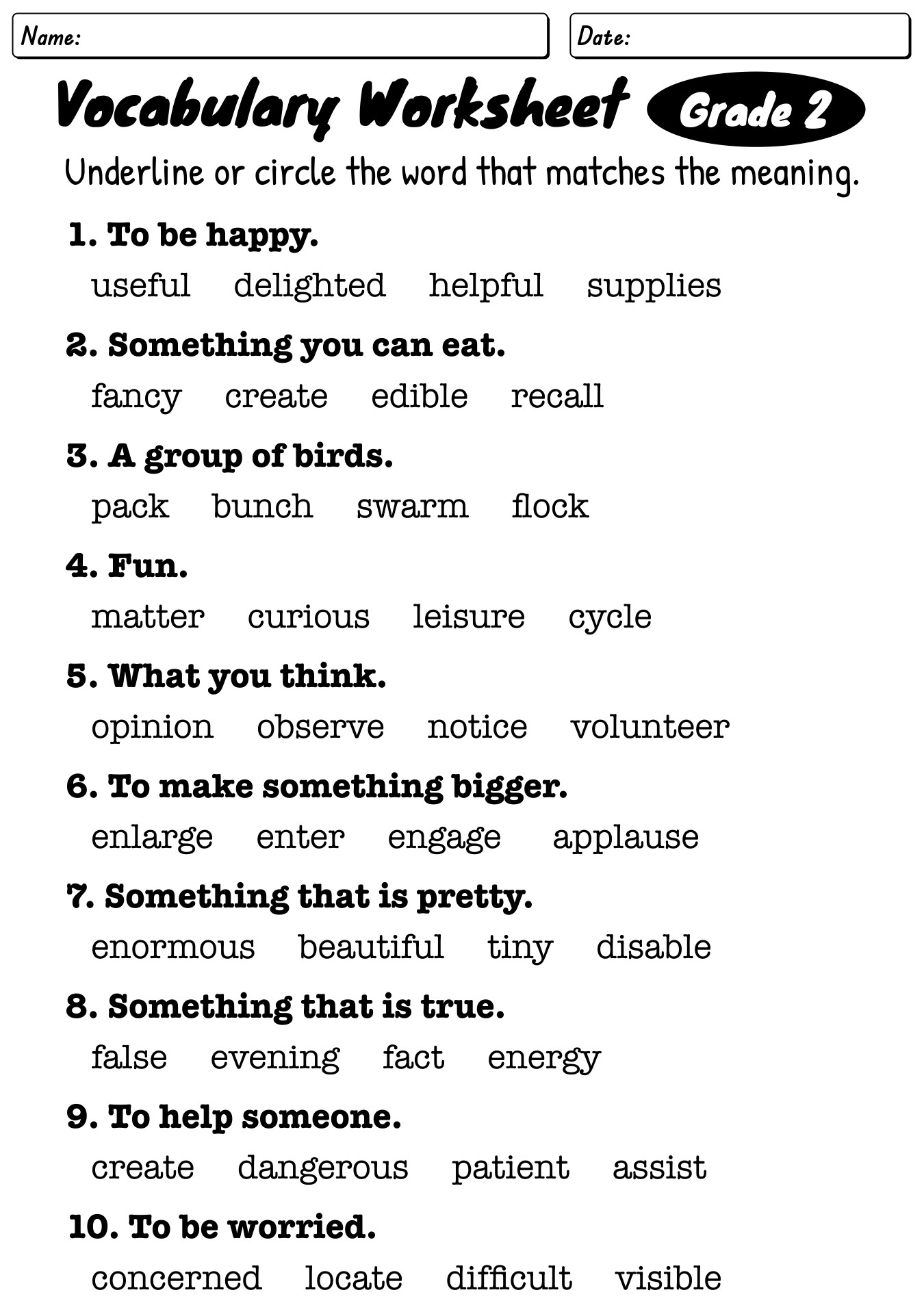 Download and Print vocabulary worksheets for grade 2 Listed below