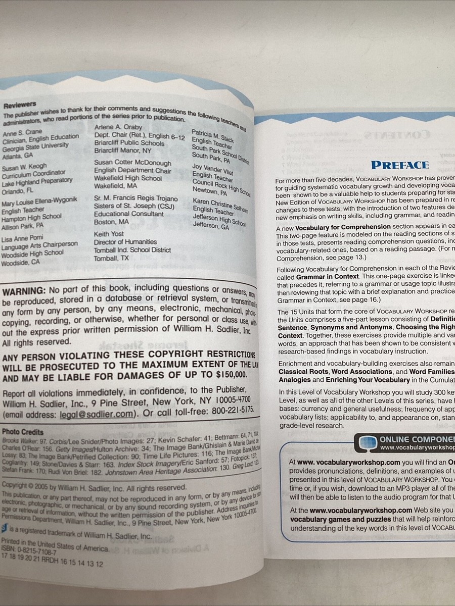 Vocabulary Workshop Examples