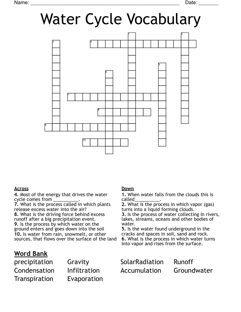 As students delve into the world of water cycle vocabulary, they gain a deeper appreciation for the interconnectedness of Earth’s natural systems. This knowledge empowers them to make informed decisions about water conservation and environmental stewardship.