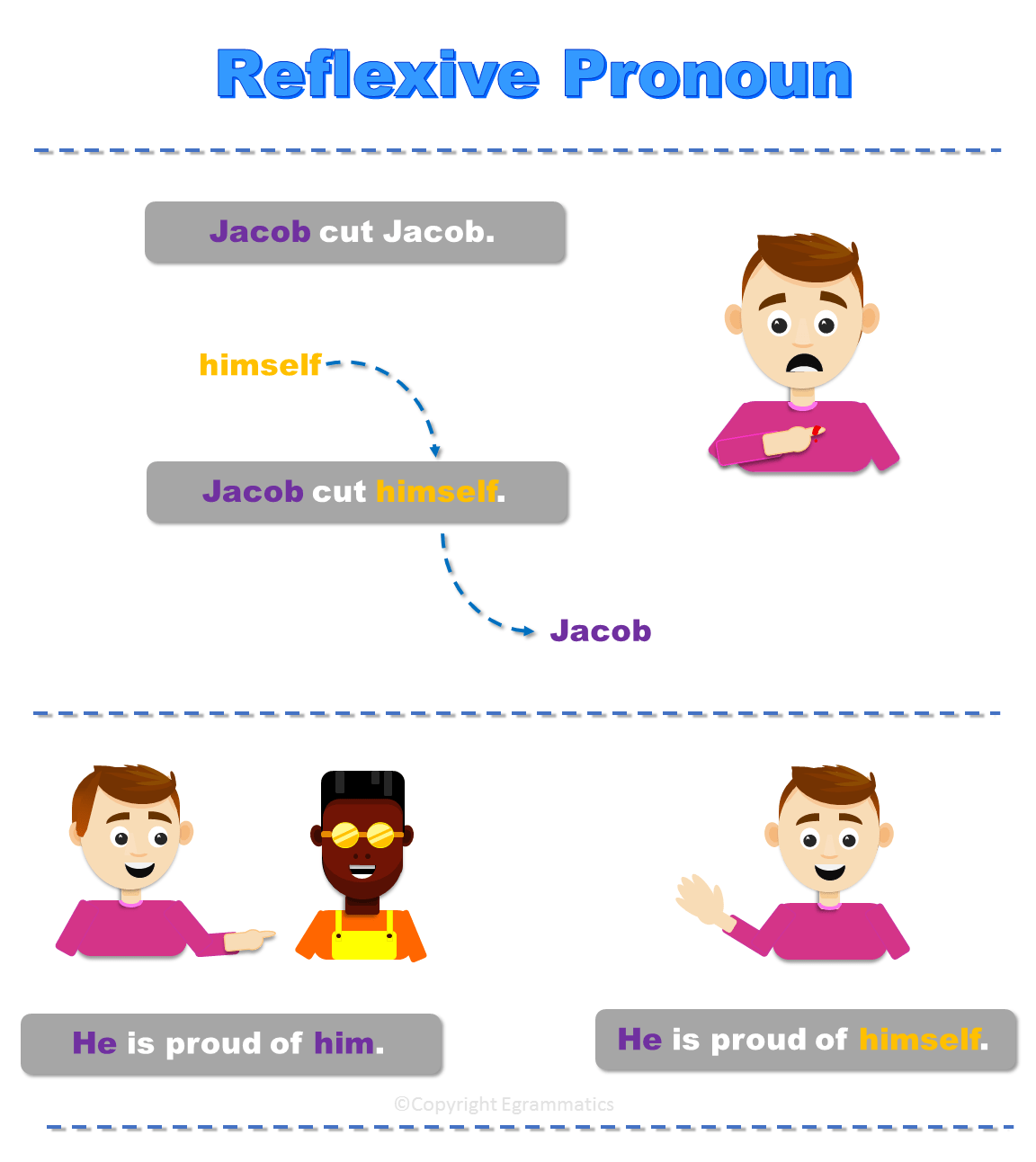 Reflexive pronouns are used when the subject of a sentence is performing an action on itself. For example, “She dressed herself before going to the party.” In this sentence, the subject “She” is also the object, so the reflexive pronoun “herself” is used to show that the action is being performed on the subject.