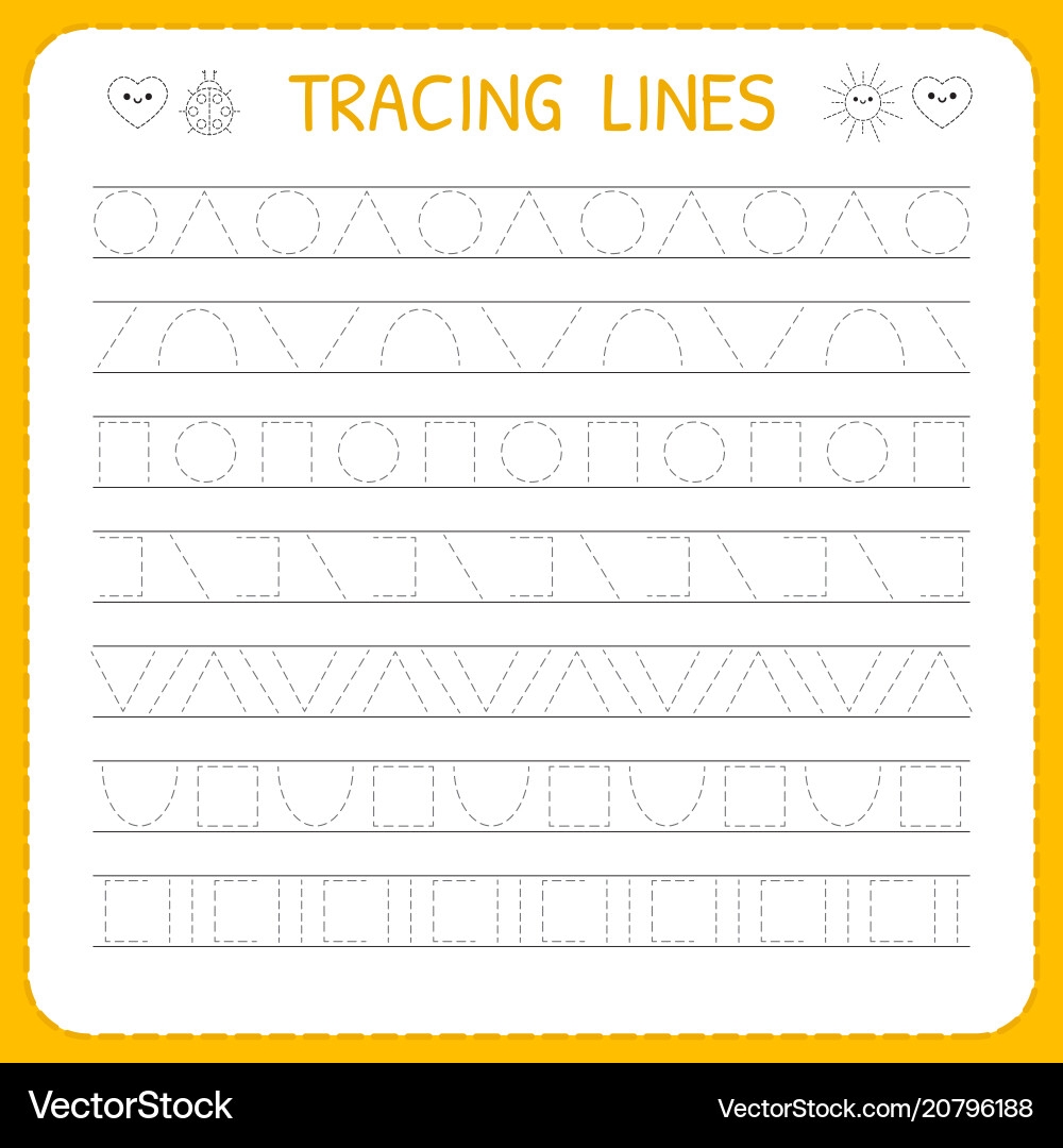 Kids Writing Line Trace Worksheet Royalty Free Vector Image